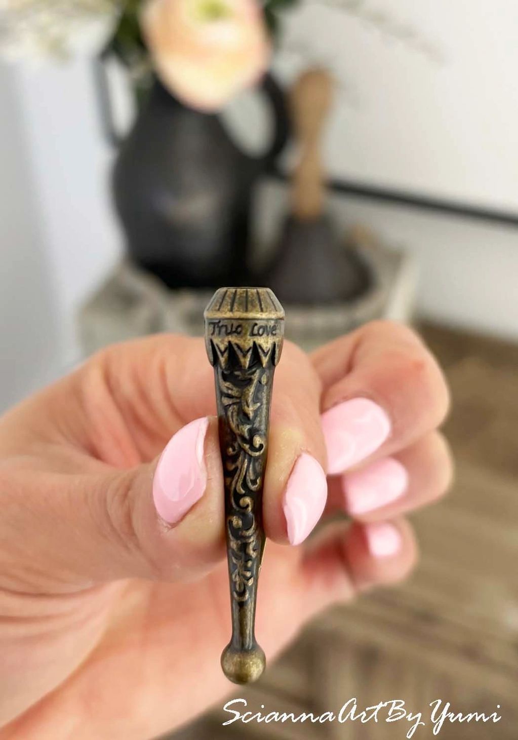 This beautiful dark colored brass bud vase pin, known as a "Tussy-mussy" in the Victorian era, is a timeless accessory full of vintage charm. Handcrafted by Yumi, it’s made from a brass material and features elegant etchings from top to bottom.